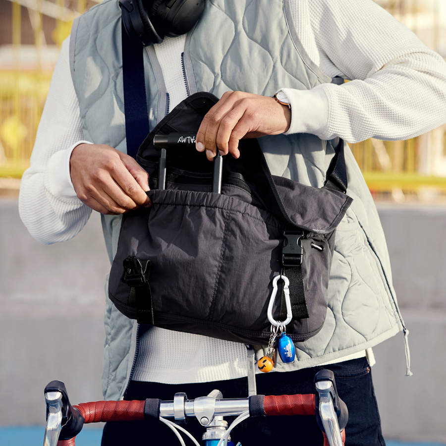 - Dual exterior stretch pockets with elastic gathers and key hook