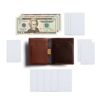 Fit your cash, coins and up to eleven cards in a slim profile. The Note Sleeve stores flat bills with ease, has quick-access slots for your daily cards and a storage area with a convenient pull-tab for less used cards. There’s even a coin pouch that doubles as a business card protector. Slim your wallet, without turning your world upside down.