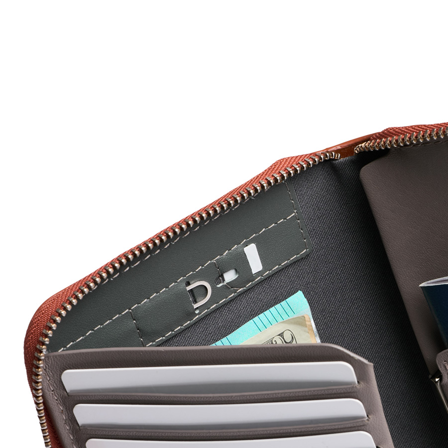 This folio keeps travel essentials at hand when you need them and zipped away when you don’t. For peace of mind on the move.