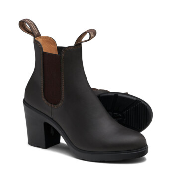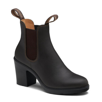 Here’s the heel you can wear all day—bring it on ready, practical and fun. New Blundstone High Heel #2366 in Stout Brown. Three inches of over-the-top comfort. Perfect travelers to pair with a skirt, leggings or jeans.