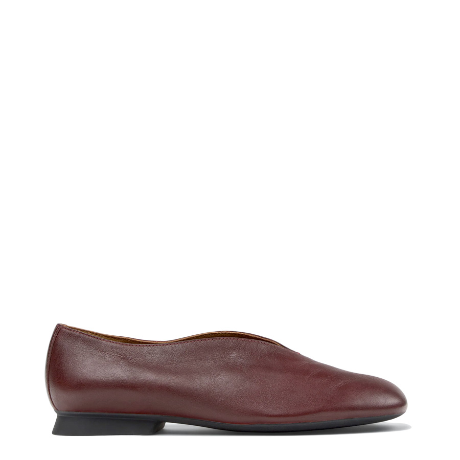 Burgundy calfskin leather shoes for women with OrthoLite® Recycled™ footbeds and TPU outsoles (20% recycled).