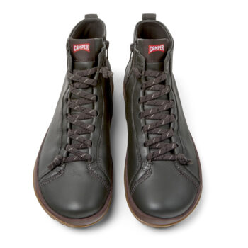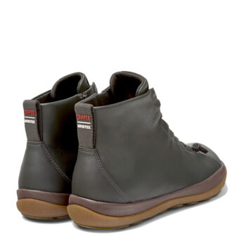Gray calfskin leather men mid boots with GORE-TEX® ePE membranes, OrthoLite® Recycled™ footbeds, elastic laces, EVA midsole and rubber outsoles.