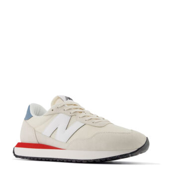 The running shoes of the 1970s might best be described as deceptively simple. While lacking the visible technology and aggressive design of later years, the innovations of the ‘70s would lay the foundation for modern performance. The 237 is a contemporary reinterpretation of ‘70s running heritage that melds a range of heritage design inspirations into one deceptively simple, exceptionally versatile, contemporary silhouette. An EVA midsole, herringbone outsole and streamlined upper offer a classic launching point for modern flourishes like oversized N branding, extended midsole length, and gator inspired foxing and mudguard. You could call the cohesion of the 237’s familiar feel and exaggerated updates the simplest way to make a statement.